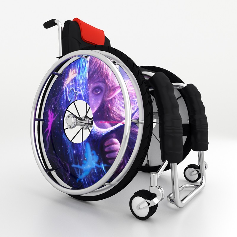 This artwork isn't just an illustration of an elf, but also a story about magic, harmony, and nature conservation. The large elf, hiding behind a tree, and his little companions become a symbol of the forces of nature, which are both powerful and subtle. The image's vibrant colors and the elf's dynamic form combine to create a unique atmosphere that draws the viewer into a fairytale-like yet magical world, where the boundaries of reality and fantasy are blurred. A wheelchair wheel cover featuring this artwork makes an ideal gift.