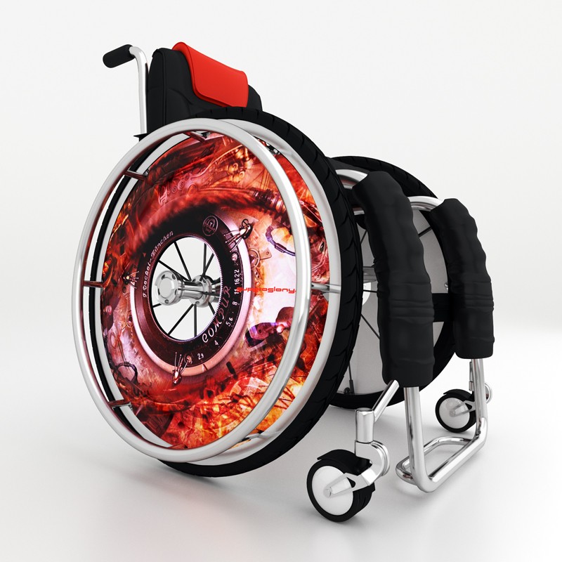 Mechanical digital eyes are a fusion of two worlds: the extraordinary abilities of the human eye and futuristic technology. Our eyes are the most advanced "cameras" in the world, capable of processing vast amounts of information in the blink of an eye. Although digital technologies are developing at a rapid pace, no digital eye can yet match the precise, natural ability of the human eye to perceive, analyze, and recognize the world around us. Inspired by this unique ability of nature, we created the "Mechanical Digital Eyes" wheelchair wheel cover, combining digital aesthetics with mechanical precision .